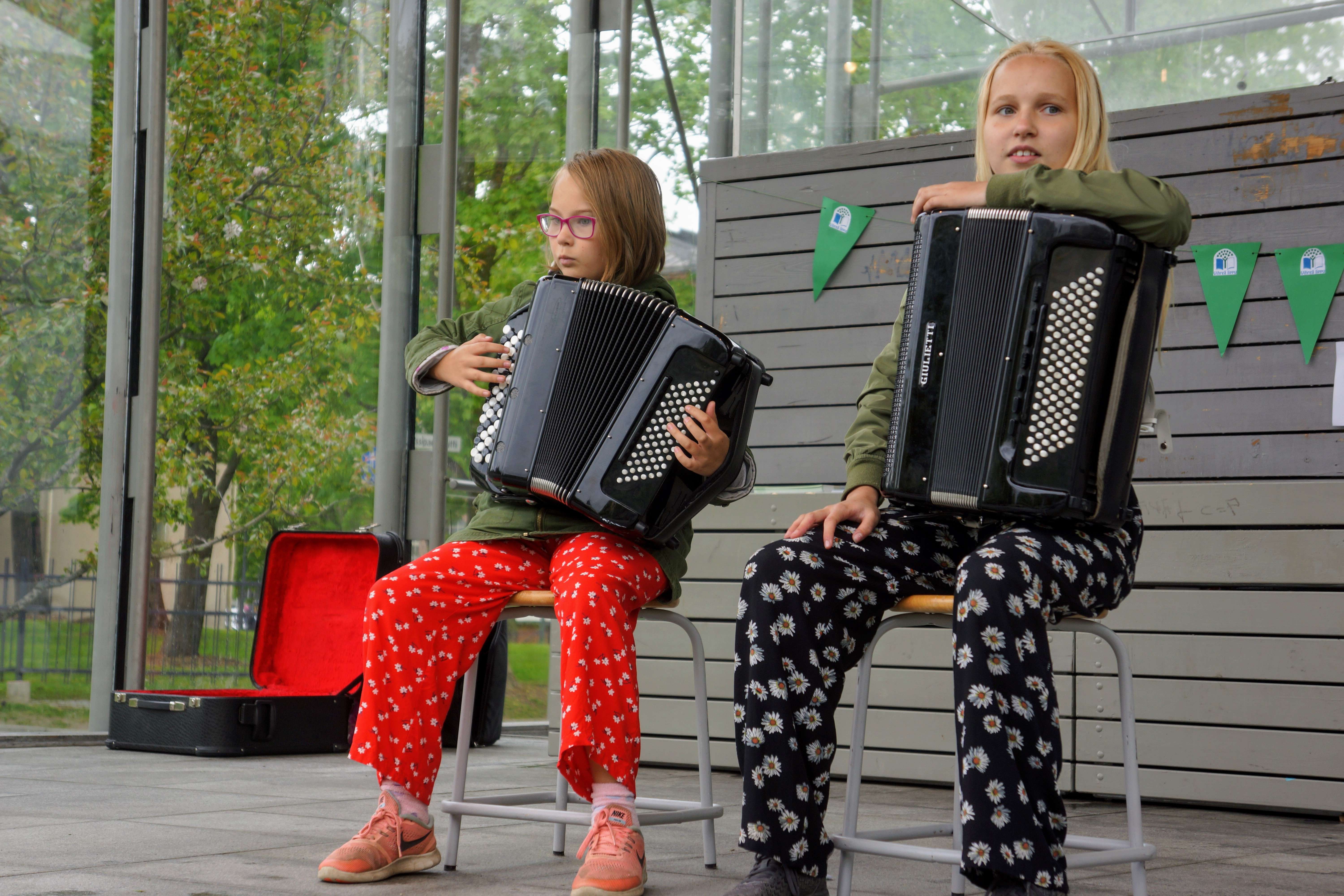 - Ava och Stella Laukkanen från Terälahden koulu spelade dragspel